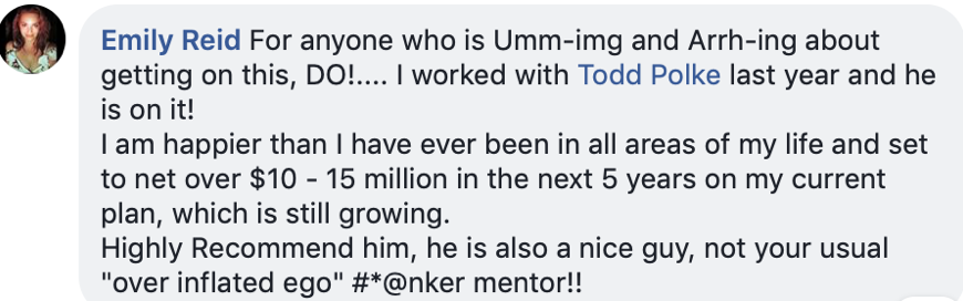 Hi Todd. How are you? How’s your Friday going so far? I’d just like to say THANK you once again for the great value that you gave on last night’s webinar. Much appreciated! You sounded so PASSIONATE to top it off with high energy with what you do and teach to help people take charge of their financial life! You INSPIRE me and I LOVE what you do! They need more people like you in this world to make an impact! Keep up the AWESOMENESS and GREATNESS in you! You’re a CHAMPION in my eyes!