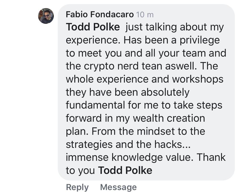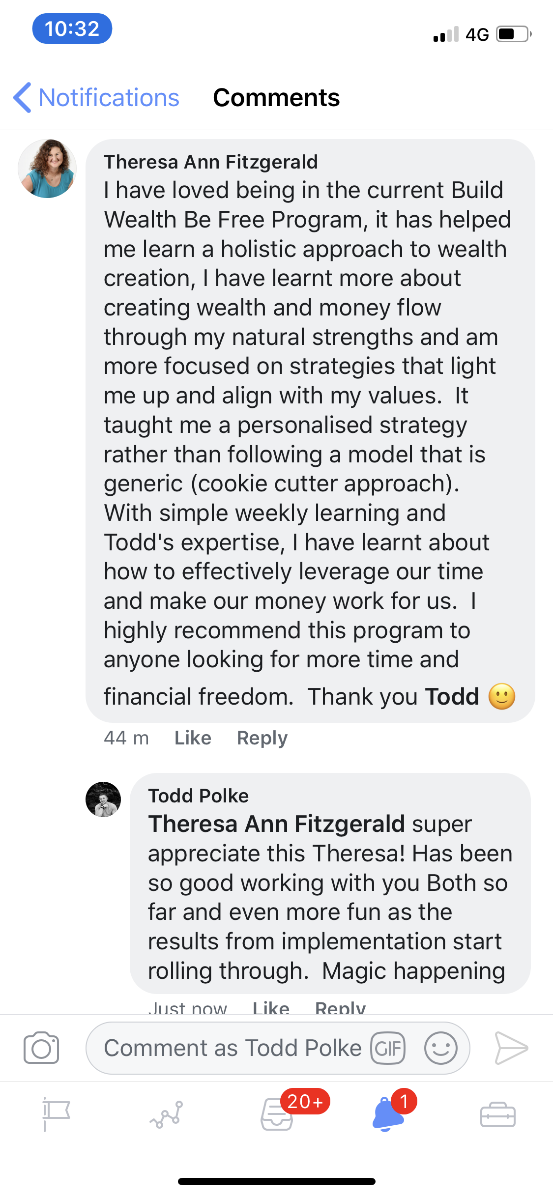 Todd is an amazing coach who now part of my team helping me achieve my best and create a life I want. He isn’t just a coach who teaches me how to make money through property. He is wealth coach who helps me step things up so that I am creating a life that is wealthy and abundant all aspects.